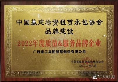 廣西建工集團智慧制造有限公司榮獲“2022年度質(zhì)量服務品牌企業(yè)”,公司董事長、黨總支書記李日紅榮獲“2022 年全國基建物資租賃承包行業(yè)杰出創(chuàng)新人才”稱號。